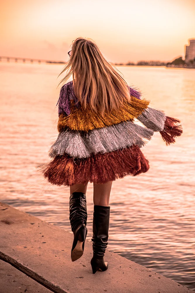 This look incorporated this gorgeous multi-colored fringe jacket because I thought it screamed art and fun and thought it was perfect for a night of outings in Miami Beach. I might be slightly obsessed with how the fringes dance around when you walk.