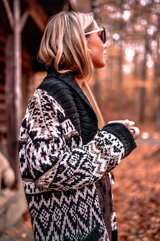 The cardigan adds the cozy aspect to this look. When looking for a fair isle cardi like this one, I purposely sized up. The look Ralph Lauren went for was an oversized look, so to achieve the same, we want to size up. I found this one at Anthropologie and it’s another piece that is great for this look, but also perfect for cozy Winter days and nights.