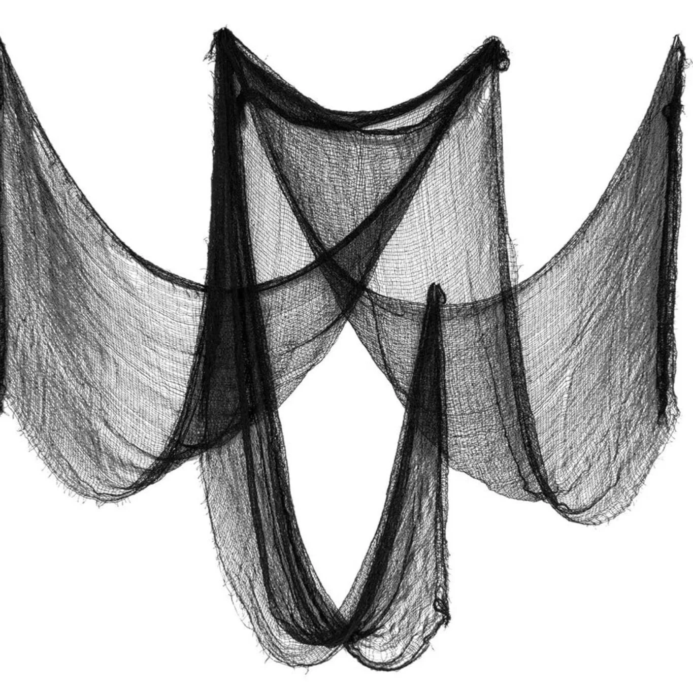 To set the mood for a spooky night, we use drapes - black , of course - and some black candles, too and finish off with some moss throughout the house.